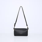 De tas opent zich aan de voorkant en is gesloten met een magneetsluiting. De driedeling van de vakjes maakt dat de vorm zo leuk is en dat je de bangle schoudertas neer kunt zetten zonder dat deze omvalt. Door de ronde en luchtige afwerking bij de naden voelt de tas soepel en zijdezacht aan.